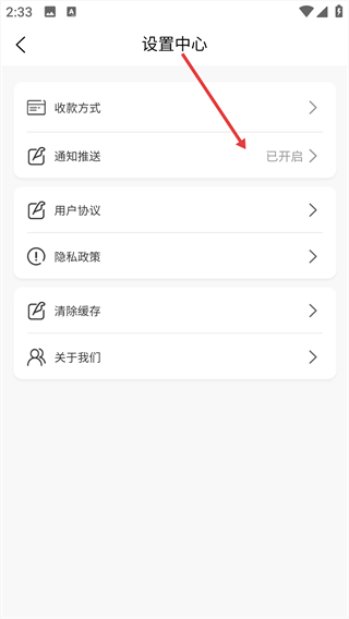 3、點擊【通知推送】選項,進入其具體設置界面。