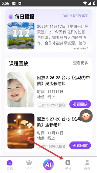 1、打開【密碼酷】軟件,點擊底部【學習】,開啟課程領取流程呀。