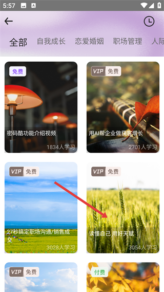 3、在全部課程中,找到【讀懂自己-用好天賦】課程封面,點擊進入課程詳情頁呢。