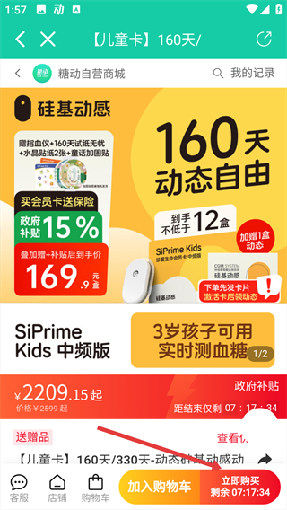 3、進入商品詳情頁面。點擊【立即購買】按鈕,彈出包含不同套裝的商品選擇窗口。