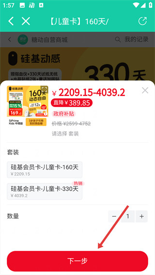 4、選定目標套裝后,點擊【下一步】按鈕,完成商品購買流程。