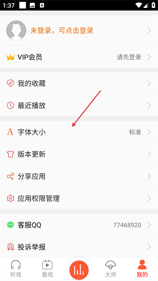 2、進入個人中心頁面后,找到【字體大小】選項。