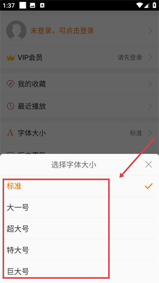 4、選好后,返回個人中心頁面,可見【字體大小】已更改。