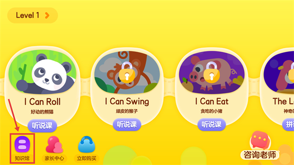 1、進入軟件Level-1界面后,找到【知識館】按鈕。