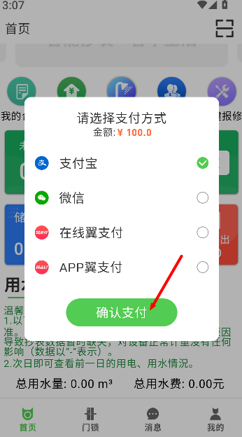 3、如需繳費,可點擊一鍵充值,選擇合適的支付方式完成充值操作。
