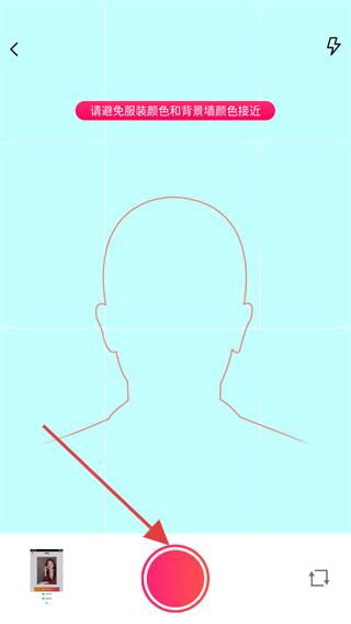 3、在拍攝界面按引導調整取景,避免服飾與背景色接近,準備拍攝。