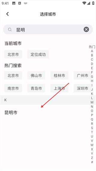 3、找到并點(diǎn)擊對(duì)應(yīng)城市選項(xiàng),完成目標(biāo)城市的選擇操作。