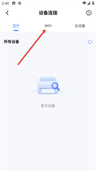 3、點擊頂部的“WIFI”標簽,切換至WIFI模式的設備連接配置界面。