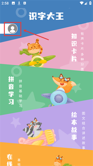 1、進入【識字大王】界面,可點擊左上角個人中心圖標。