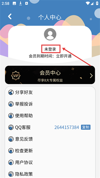 2、進入【個人中心】后,可見【未登錄】狀態,點擊去登錄。