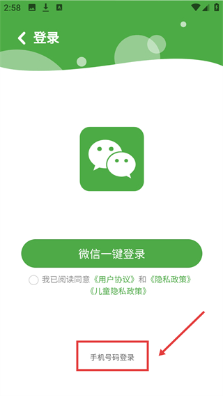 3、進入【登錄】界面,點擊【手機號碼登錄】。