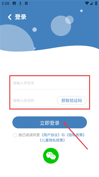 4、選【手機號碼登錄】后,在【請輸入手機號】框填號碼,點【獲取驗證碼】填內容,勾選協議再點【立即登錄】完成登錄。