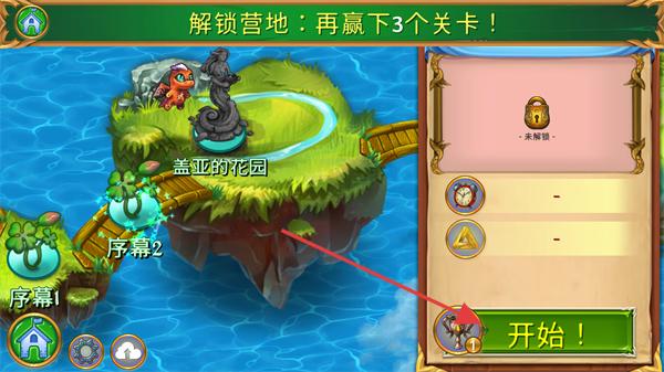 3、返回關(guān)卡選擇界面,找到蓋亞的花園關(guān)卡入口,點擊右側(cè)開始!按鈕進入新關(guān)卡。