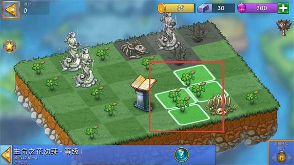 4、進入新關(guān)卡后,找到綠色區(qū)域的生命之花幼芽,將其移動至對應(yīng)區(qū)域完成布局。