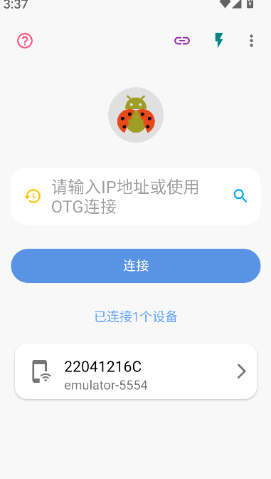1、打開《甲殼蟲ADB助手》軟件后,可通過輸入IP地址的方式進行連接,完成設備的ADB鏈接操作。