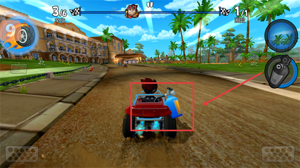 3、使用【藍色加速道具】觸發賽車噴射效果,借助加速狀態拉開與對手距離,穩固領先位置。