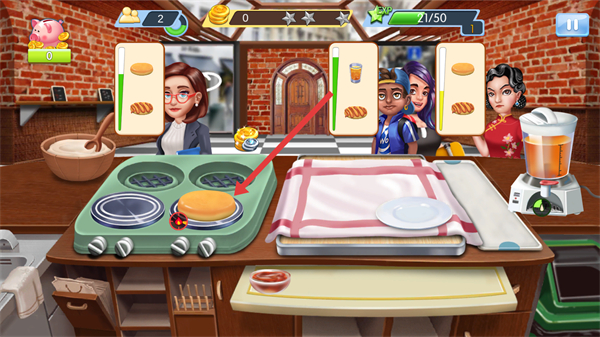5、注意訂單等待時間觀察,在時間耗盡之前必須完成出餐推進訂單任務挑戰(zhàn),這樣也能帶來難度極高的手速考驗。