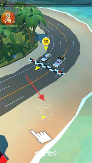 4、遇到其他車輛時,靈活調(diào)整路線,借助漂移技巧超越對手,同時保持在道路范圍內(nèi),向終點推進。
