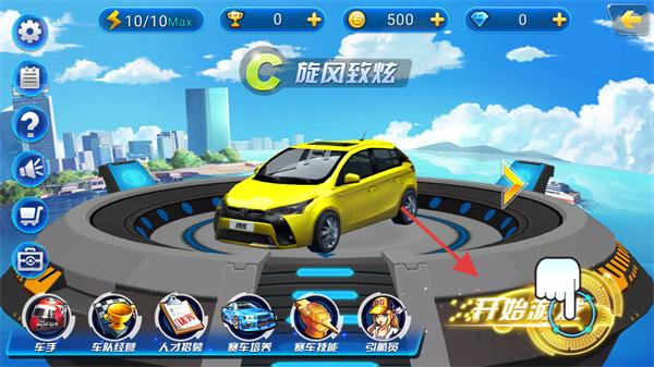 2、在車輛界面選擇【旋風(fēng)致炫】車型,點(diǎn)擊【開始飆】按鈕進(jìn)入競(jìng)速比賽環(huán)節(jié)。