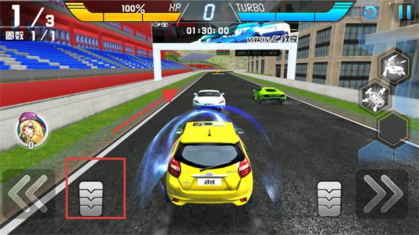 3、比賽中通過(guò)左右按鍵控制車輛方向,利用剎車鍵(下箭頭)調(diào)整車速,與其他車輛競(jìng)速。