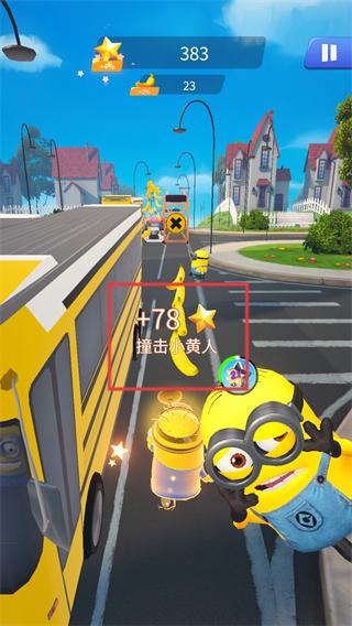 1、撞擊其他小黃人,獲得【+78-星星】的積分加成,當前星星積分為【383】、香蕉積分為【23】。