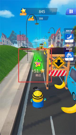 1、拾取【+51-星星】道具,星星積分升至【845】,同時避開旁邊的障礙裝置。
