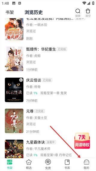1、來到愛奇藝閱讀的首頁中,匯集了各種類型的小說資源,接著點擊右下角的“我的”選項。