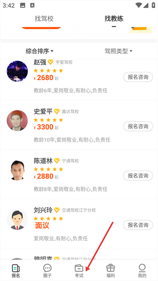 1、打開app,點擊底部“考試”選項,切換至考試頁面。