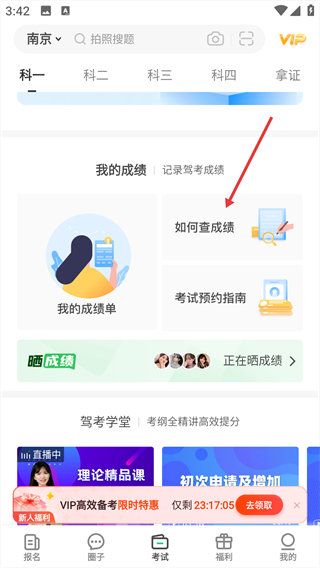 2、在考試頁面中,找到“如何查成績”選項并點擊,進入成績查詢指引頁面。