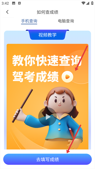 3、根據視頻教學,查完成績后,點擊“去填寫成績”按鈕。