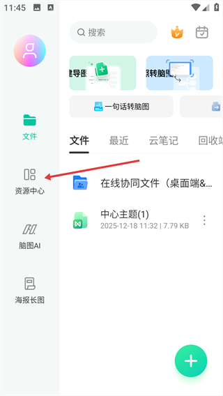 1、點擊左側的【資源中心】選項,進入資源中心頁面。