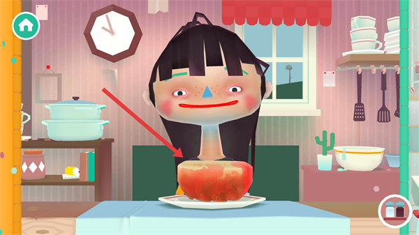 3、將食物拖到角色嘴里,直至角色將食物被吃完。