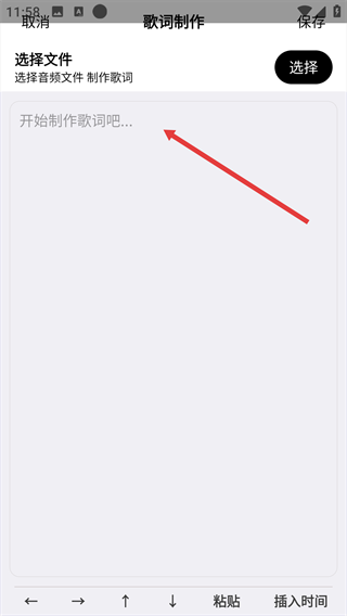 4、在編輯區域輸入歌詞內容,完成后點擊“保存”即可完成歌詞編輯。