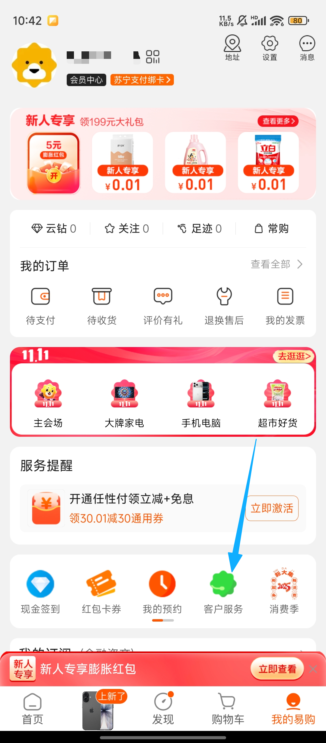 2、在【我的易購】頁面中,找到【客戶服務】選項并點擊,這里匯聚著各類服務入口,方便后續(xù)聯(lián)系客服呢。