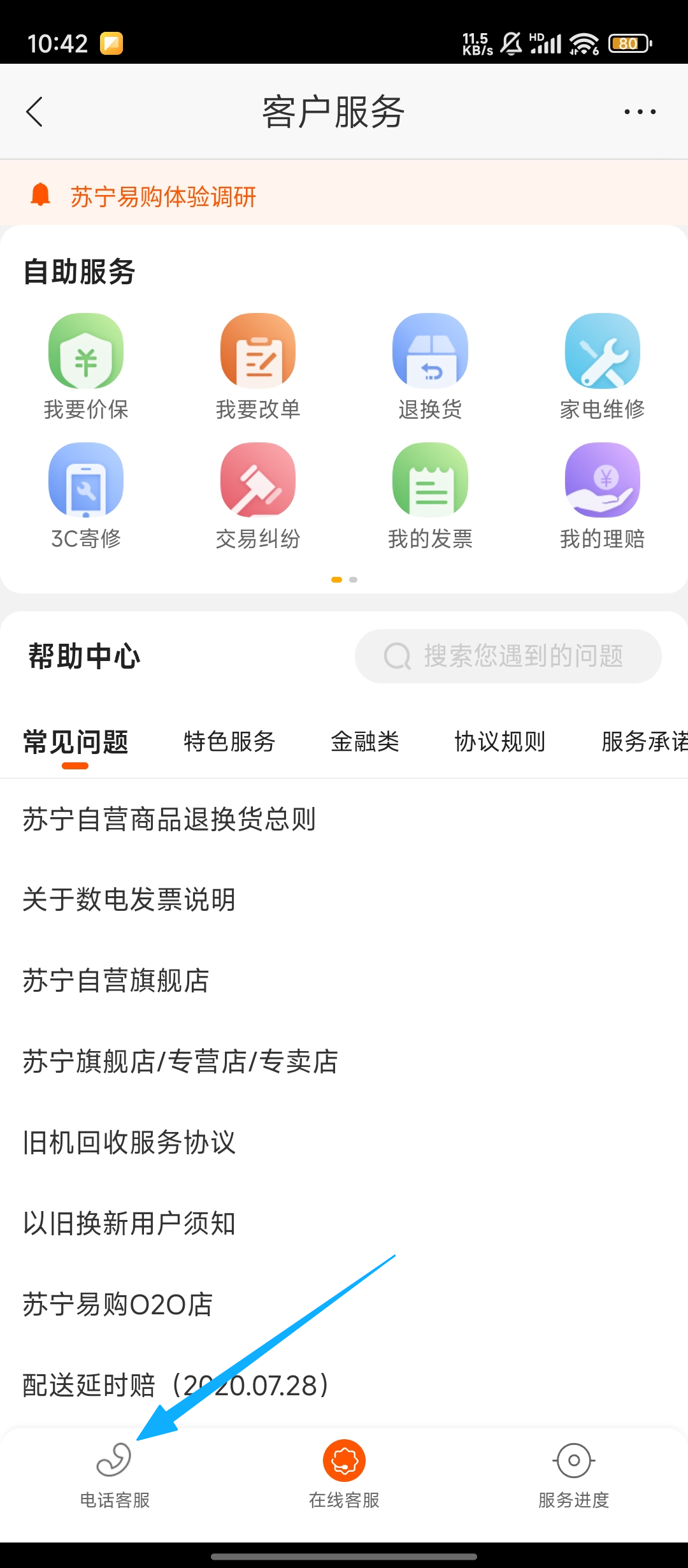 3、進入【客戶服務】頁面后,點擊左下角【電話客服】,即可進入電話客服的選擇界面,離人工客服更近一步咯。