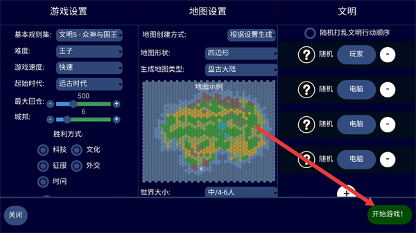2、在游戲設置頁調整難度地圖等參數,確認配置后點擊開始游戲進入對局。