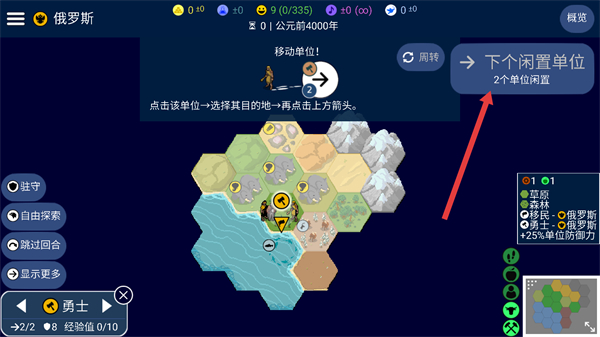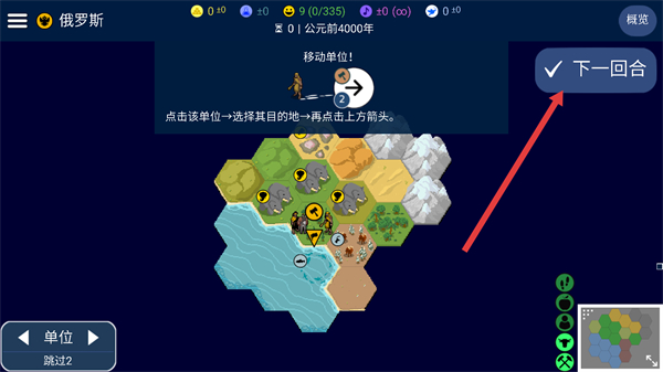4、完成單位操作后,點擊界面右側下一回合并按鈕,推進游戲至新的回合階段。