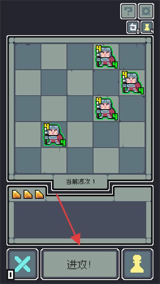 1、戰斗準備階段,點擊【進攻!】按鈕開啟當前波次(第1波)的戰斗,場上己方棋子會自動觸發攻擊。