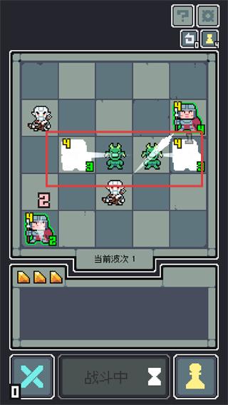 2、自動戰斗精決策:點擊戰斗后,隨從自動進入棋盤殺敵,戰斗結束玩家需合理選擇援軍和道具,強化隊伍。