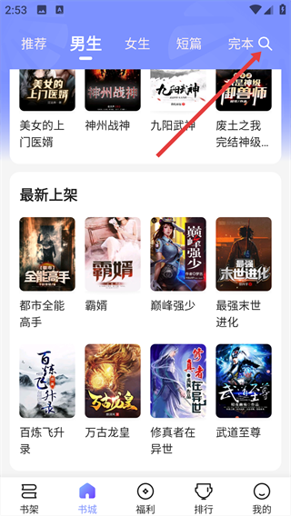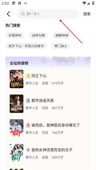 2、輸入想要看的小說名稱,點擊【搜索】。