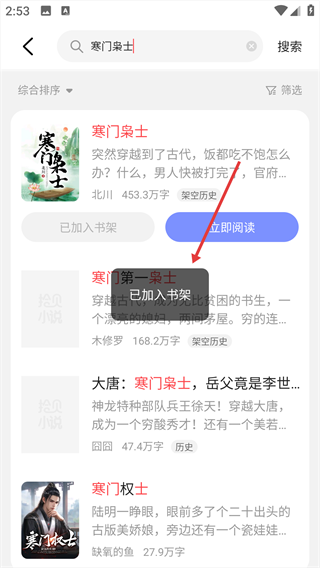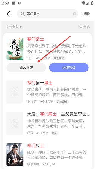 3、在搜索結果中找到目標書籍,點擊【加入書架】按鈕。