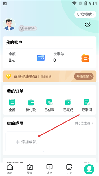 2、在個人中心頁面,找到【家庭成員】模塊,點擊【添加成員】按鈕。