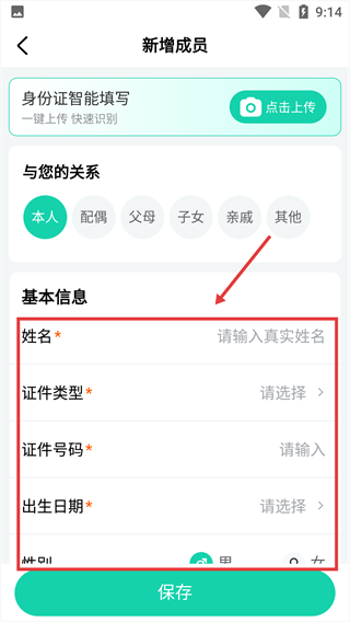 4、確認所有內(nèi)容無誤,點擊底部的【保存】按鈕,完成家庭成員的添加流程。