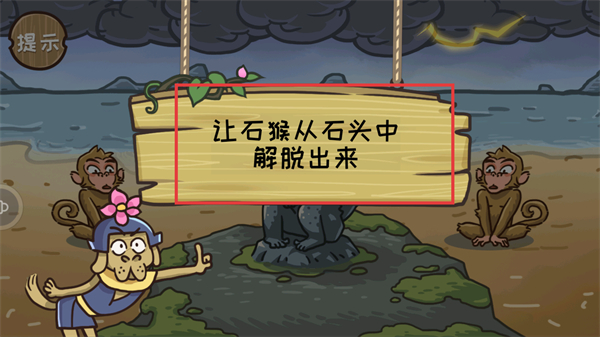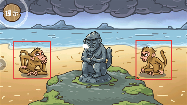 2、觀察場(chǎng)景內(nèi)兩側(cè)猴子的狀態(tài),進(jìn)行對(duì)應(yīng)的互動(dòng)操作,能有效推進(jìn)中間石猴解脫的進(jìn)程。