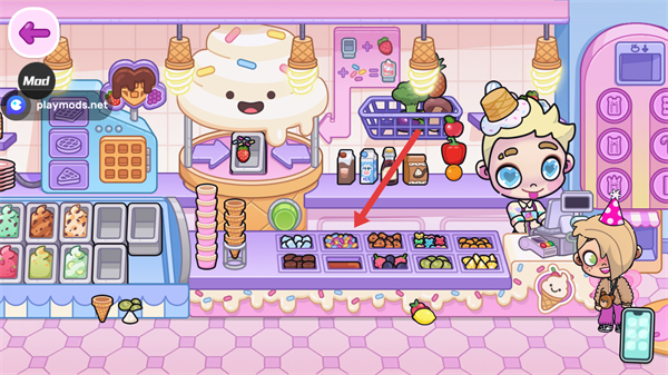 3、選擇柜臺處的對應食材,將其添加到制作設備中,完成甜品的原料準備。