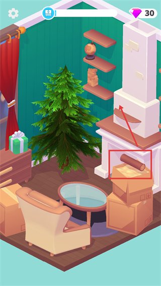 1、找到房間內的【紙箱】,打開后獲取裝飾相關物品,為后續布置場景積累所需的材料資源。