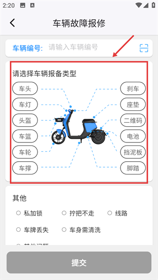 2、從“車輛報備類型”區(qū)域選擇故障部件。