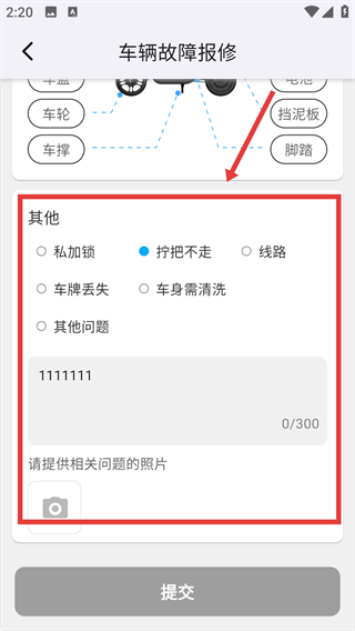 3、在輸入框中填寫故障描述,并上傳故障現(xiàn)場的照片。