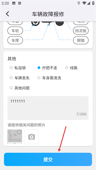 4、確認(rèn)信息完整后,點擊頁面底部的“提交”按鈕,完成車輛故障的報修操作。