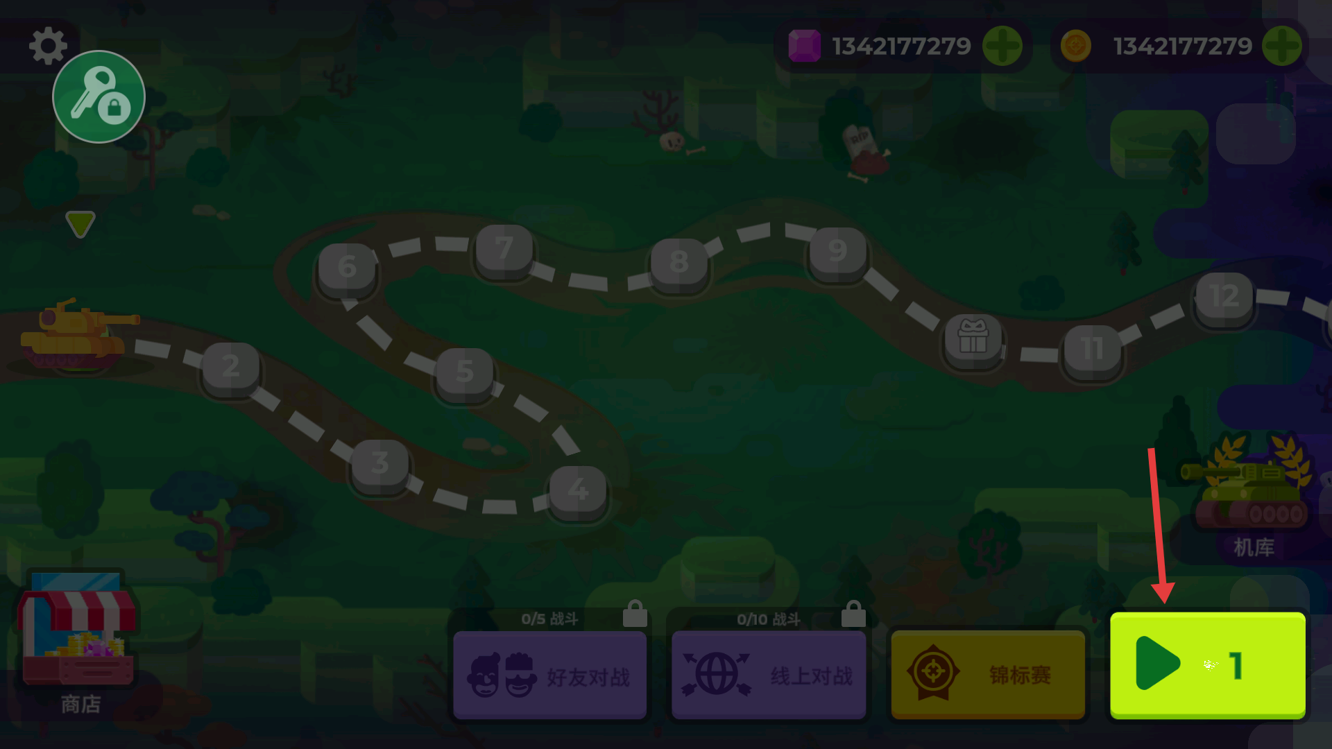 1、選擇路徑節點,點擊【綠色開始按鈕】,進入對戰模式,可通過【商店】獲取道具增強戰力。